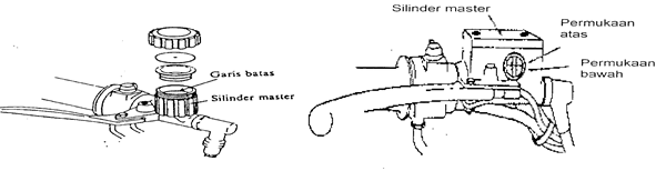 1. Periksa / cek tinggi cairan permukaan rem apa masih dalam batas yang ditentukan ( gambar A atau B )